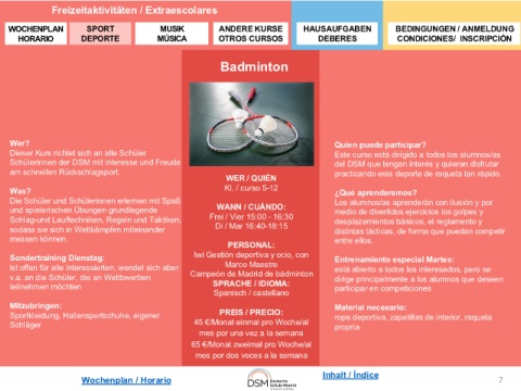 Freizeitaktivitäten / Extraescolares