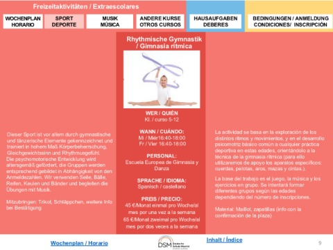 WOCHENPLAN SPORT MUSIK ANDERE KURSE HAUSAUFGABEN BEDINGUNGEN / ANMELDUNG