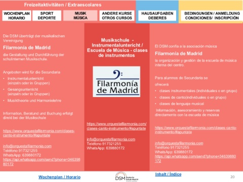 Wochenplan / Horario 20