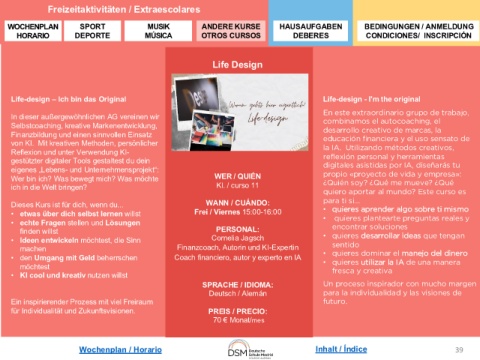 • etwas über dich selbst lernen willst Frei / Viernes 15:00-16:00 • quieres aprender algo sobre ti mismo