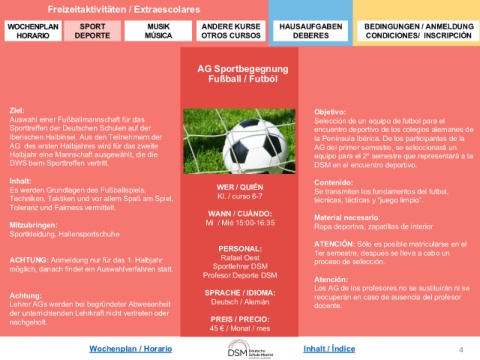 WOCHENPLAN SPORT MUSIK ANDERE KURSE HAUSAUFGABEN BEDINGUNGEN / ANMELDUNG