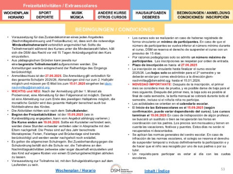 (Nachmittagsbetreuung und Freitzeitkurse) ist, dass sich die notwendige forma vinculante un mínimo de participantes. En caso de que el