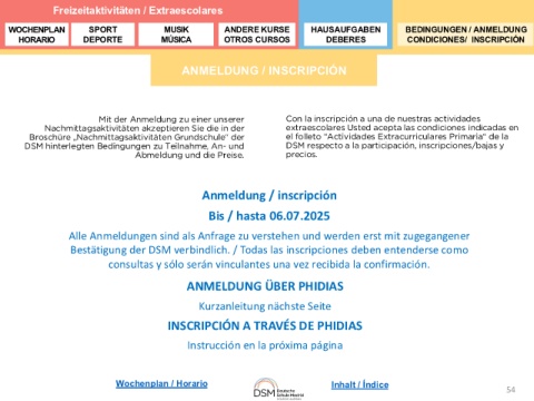 Bestätigung der DSM verbindlich. / Todas las inscripciones deben entenderse como