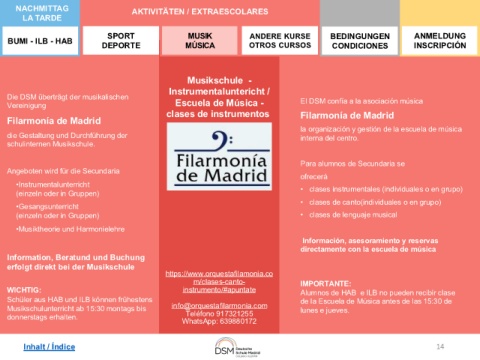 Musikschulunterricht ab 15:30 montags bis info@orquestafilarmonia.com lunes e jueves.
