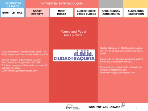 WOCHENPLAN / HORARIO 12
