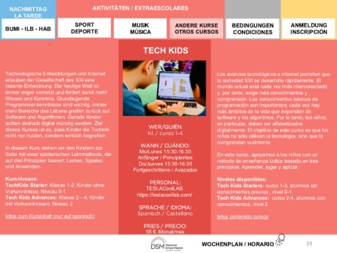 NACHMITTAG AKTIVITÄTEN / EXTRAESCOLARES