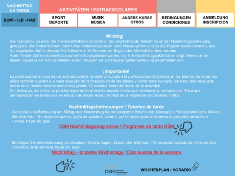DSM Nachmittagsprogramme / Programas de tarde DSM