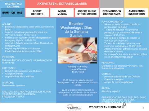 • Alternativ: Arbeitsgemeinschaften, Musikschule, • Tiempo de ocio bajo vigilancia y con