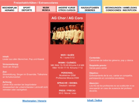 Wochenplan / Horario Inhalt / Índice 16