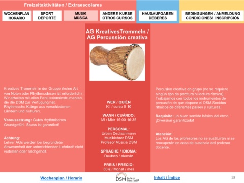WOCHENPLAN SPORT MUSIK ANDERE KURSE HAUSAUFGABEN BEDINGUNGEN / ANMELDUNG