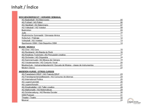 WOCHENÜBERSICHT / HORARIO SEMANAL