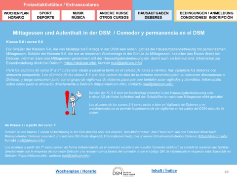 H WOCHENPLAN R O I D SPORTRTE P E O MUSIKCA M Ú S I ANDERE KURSES C U R S O C BEDINGUNGEN / ANMELDUNG I R P C Ó I N