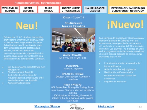 im Studienraum angemeldet. Ein freier extraescolar,no se permite la permanencia