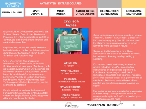 NACHMITTAG AKTIVITÄTEN / EXTRAESCOLARES