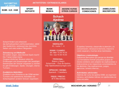 Schachspielern anderer Schulen organisiert. 37 € /Monat/mes otras escuelas