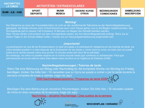 DSM Nachmittagsprogramme / Programas de tarde DSM