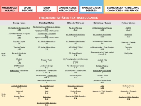 WOCHENPLAN SPORT MUSIK ANDERE KURSE HAUSAUFGABEN BEDINGUNGEN / ANMELDUNG