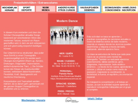 statisch-dynamischer Tanz...), Die Schüler Mi / Miér 16:40-18:00 Kl. 7-12 dinámico…) a través de los cuales, aprenderán a