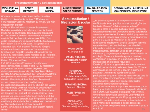 wirst du Teil des Mediationsteams der DSM. Das un ambiente escolar más positivo y pasarás a formar