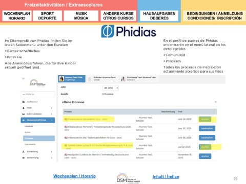 Im Elternprofil von Phidias finden Sie im En el perfil de padres de Phidias