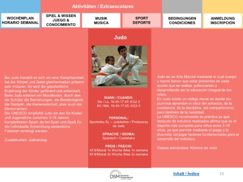 WOCHENPLAN JUEGO & MUSIK SPORT BEDINGUNGEN ANMELDUNG