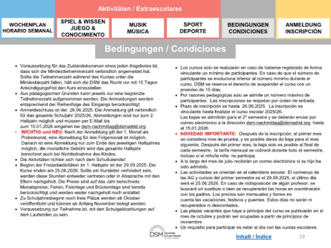 Kurse enden am 25.06.2026. Sollte ein Kursleiter verhindert sein, • Las actividades se orientan en el calendario escolar. El comienzo de