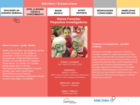 Passend zum jeweiligen Experiment werden DSM Lehrerin DaF/ profesora DSM para de apoyo en el desarrollo del lenguaje en alemán."