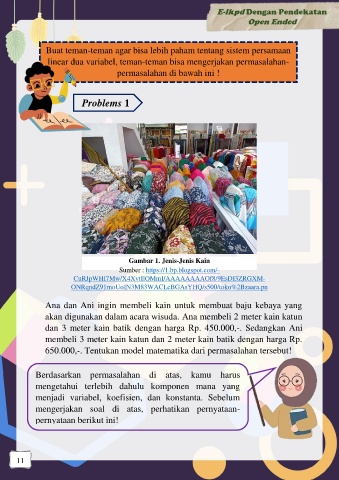 Ana dan Ani ingin membeli kain untuk membuat baju kebaya yang