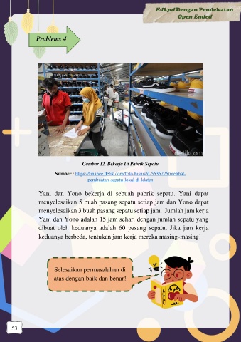Yani dan Yono bekerja di sebuah pabrik sepatu. Yani dapat
