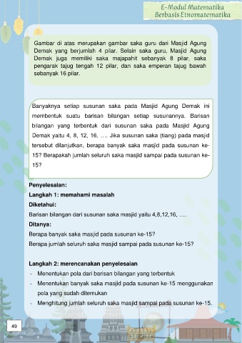 - Menentukan banyak saka masjid pada susunan ke-15 menggunakan