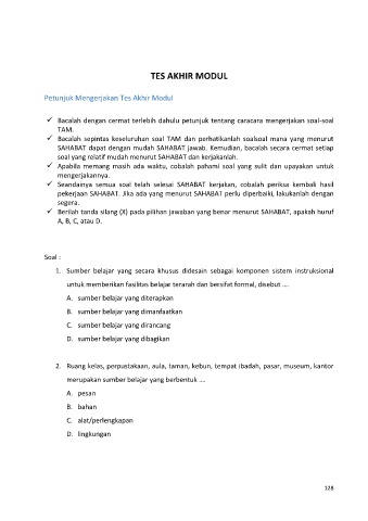 Bacalah sepintas keseluruhan soal TAM dan perhatikanlah soalsoal mana yang menurut