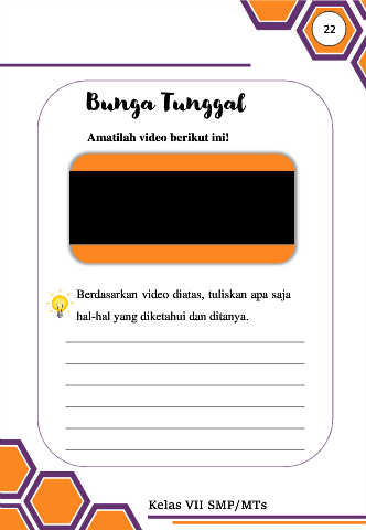22 Bunga Tunggal Amatilah video berikut ini! Berdasarkan video diatas, tuliskan apa saja hal-hal yang diketahui dan ditanya. Kelas VII SMP/MTs