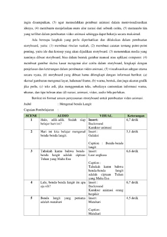 ingin disampaikan, (3) agar memudahkan pembuat animasi dalam memvisualisasikan