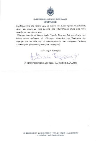 Page 2 - ΧΑΙΡΕΤΙΣΜΟΣ ΜΑΚΑΡΙΩΤΑΤΟΥ ΑΡΧΙΕΠΙΣΚΟΠΟΥ ΑΘΗΝΩΝ ΚΑΙ ΠΑΣΗΣ ΕΛΛΑΔΟΣ