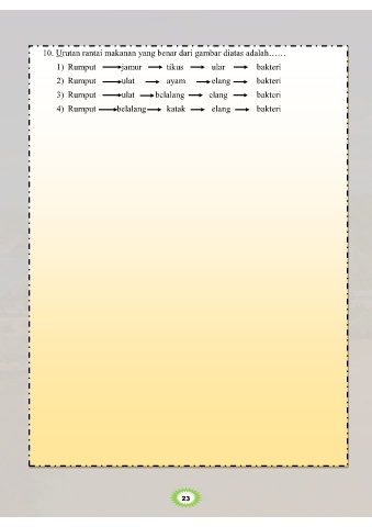 10. Urutan rantai makanan yang benar dari gambar diatas adalah……