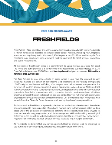 gun safety. Freshfields also partners with corporate clients to develop pro bono initiatives,