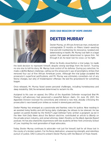 pursuit of justice, OAD is proud to present Dexter Murray with the Beacon of Hope Award.