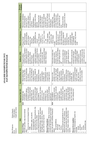 SKL Kompetensi Inti (KI) Kompetensi Dasar (KD) Indikator (IPK) Materi Pemebelajaran Kegiatan Pembelajaran