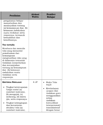 3.3 Menerapkan Teks lisan dan tulis untuk Masing-masing menggunakan KRITERIA PENILAIAN 8 JP • Buku Teks
