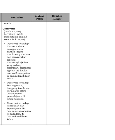 yang memberikan menggunakan bahasa Inggris • Observasi terhadap