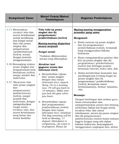 3.13 Menerapkan Teks tulis (a) pesan Masing-masing menggunakan KRITERIA PENILAIAN 8 JP • Buku Teks