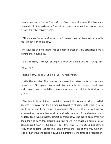 Laila thanks him. She crosses the streambed, stepping from one stone