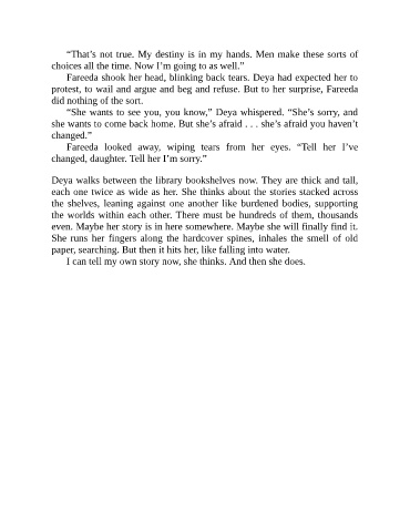 Fareeda shook her head, blinking back tears. Deya had expected her to