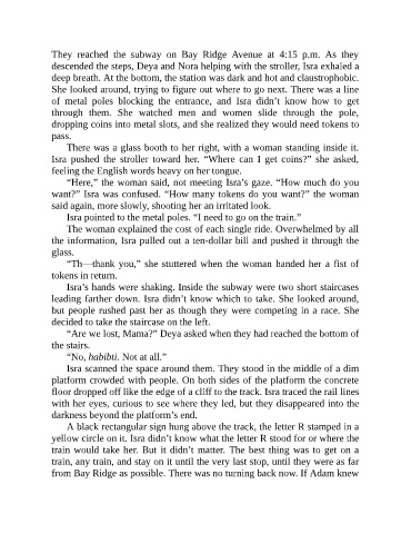 Isra’s hands were shaking. Inside the subway were two short staircases
