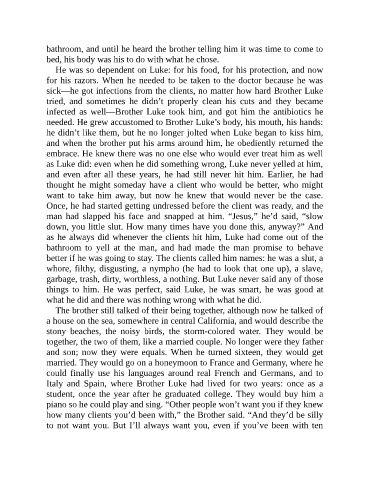 needed. He grew accustomed to Brother Luke’s body, his mouth, his hands: