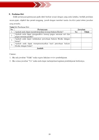 1. Jika ada jawaban “Tidak” maka segera lakukan review pembelajaran.