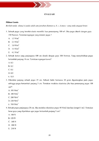 4. Sebuah pegas panjangnya 20 cm. Jika modulus elastisitas pegas 40 N/m2 dan luas ketapel 1 m2. Tentukan