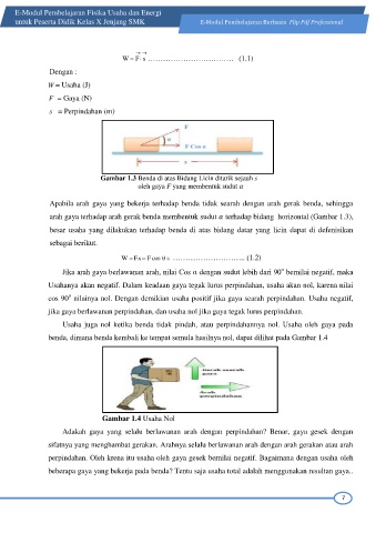 arah gaya terhadap arah gerak benda membentuk sudut terhadap bidang horizontal (Gambar 1.3),