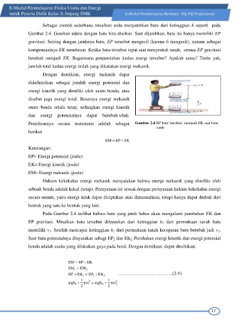 Pada Gambar 2.4 terlihat bahwa batu yang jatuh bebas akan mengalami perubahan EK dan