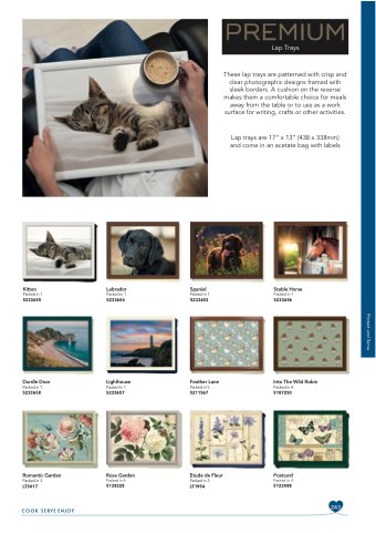 These lap trays are patterned with crisp and clear photographic designs framed with sleek borders. A cushion on the reverse makes them a comfortable choice for meals away from the table or to use as a work surface for writing, crafts or other activities.